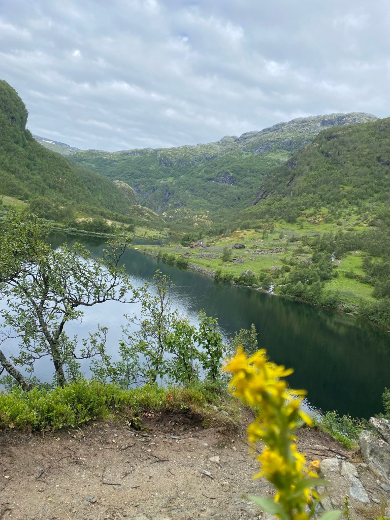 Vi valgte å være i Aurland til dagen etter fordi Aurland er et roligere og hyggeligere sted en det turistifiserte Flåm. Vi sov dog på et ekstremt overpriset hotell. Et helt ordinært dobbbeltrom med helt ordinær frokost koster kr. 4500,- for en natt. FREKT!