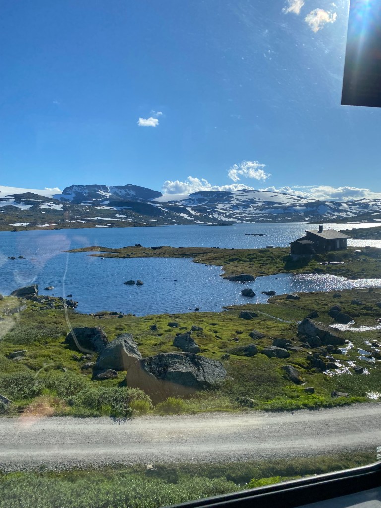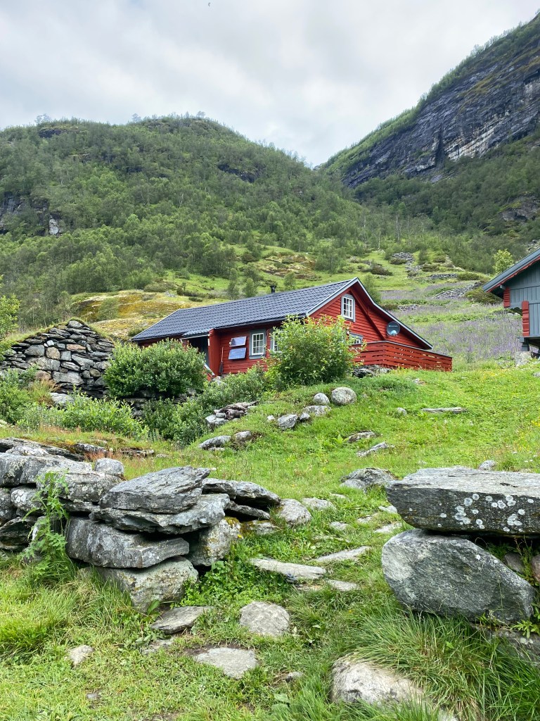 Vi valgte å sove på Aurlandsdalen Turisthytte. Dette er en DNT hytta.
