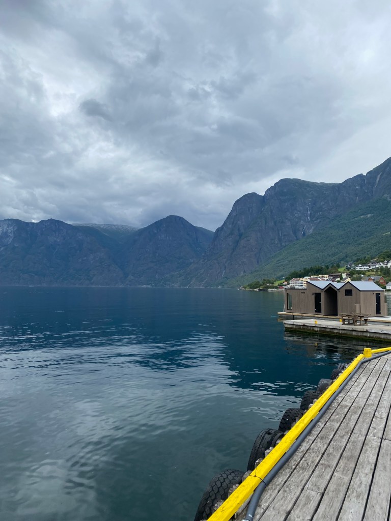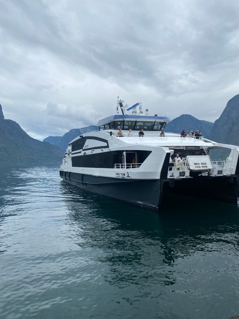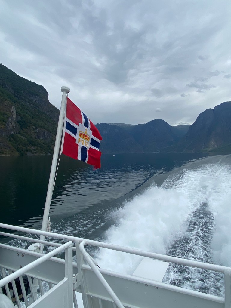 Vi valgte å ta ferje fra Aurland til Flåm fredag 12.juli kl. 13.00 med Norled fra kaia i Aurland sentrum.