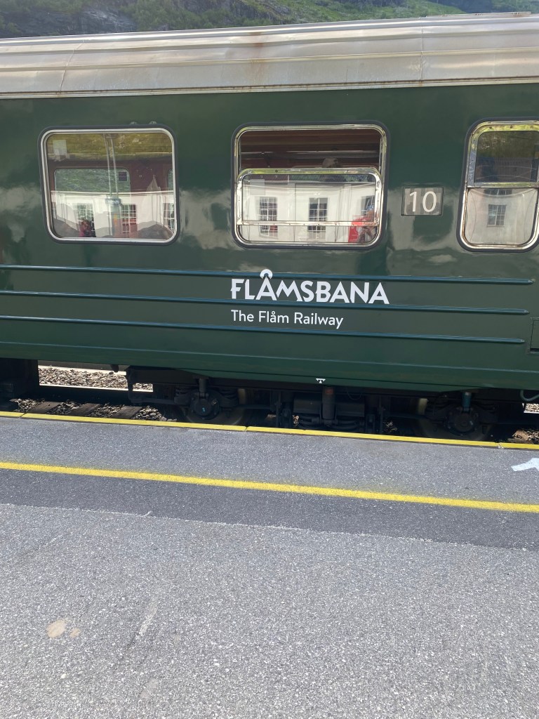 Vi hadde forhåndsbestilt biletter på Flåmsbanen tog toget som gikk kl.16.15 og var på Myrdal kl.17.10. Pris pr. person var kr. 510,-.