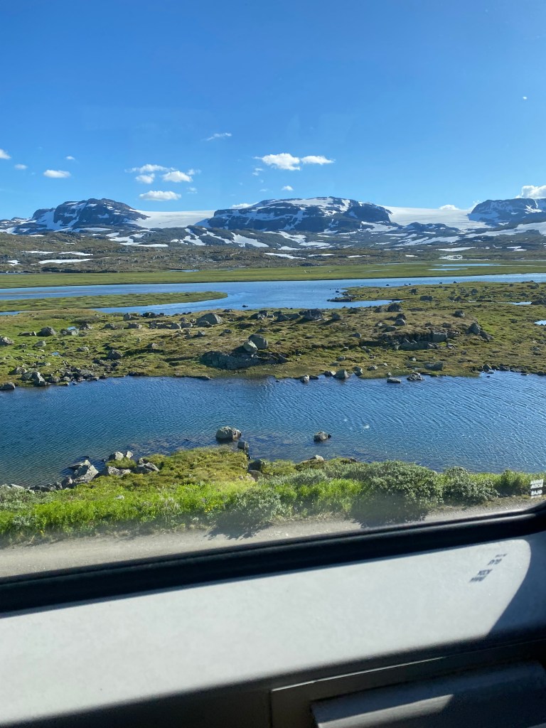 Tog fra Oslo S 8.juli kl.08.22. Fremme ved Ål stasjon kl. 11.33. Bilettene kostet kr. 749 pr. person. Buss 850 fra Ål stasjon kl. 12.00 med ankomst Geiteryggen Øst kl. 13.10 kostet kr. 44 pr person og kjøpes i SKYSS appen. Bussbilettene kan ikke forhåndsbestilles.