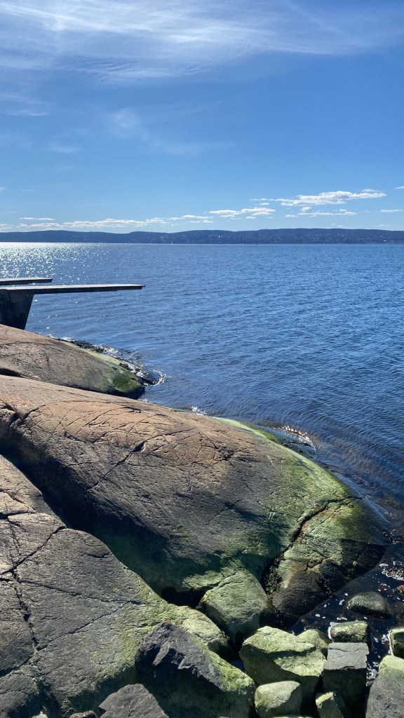 Start ut fra Middelalderparken/Sørenga og sykle på gang og sykkelvei mot Nordstrand. En sykler på fortau forbi mange badeplasser og det er naturlig nok både gående og syklende familier på vei til bading på fortauet. Her er det virkelig et vakkert skue utover Oslofjorden så anbefale å sykle sent og nyt – få med dere utsikten istedenfor å bli stresset av at det noen plasser er litt mye folk. En sykler forbi Nordstrand, Ljan og blant annet badestedet Katten. Jeg angrer på at jeg ikke stoppet og tok flere bilder for å vise dere. Her er et bilde fra en av strendene jeg syklet forbi (bildet er tatt på en joggetur tidligere i sommer).