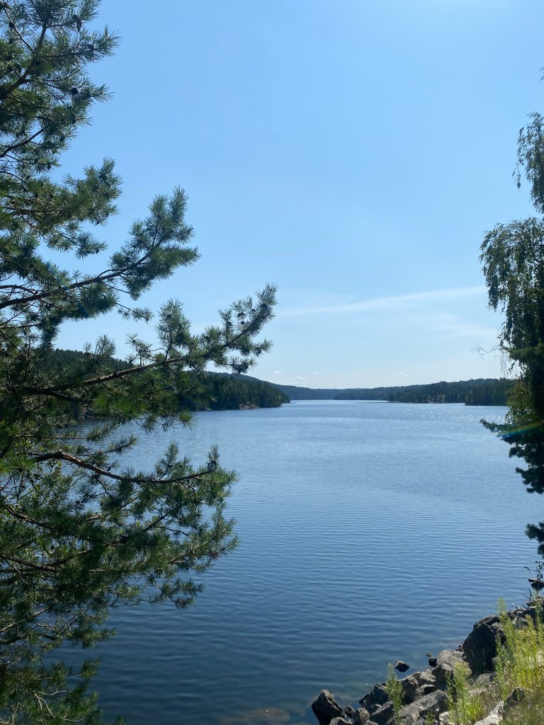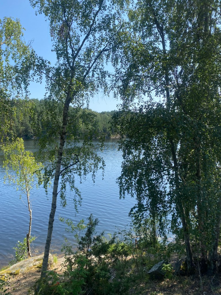 Etter ca, 8,5 kilometer på fortau må en ut i hovedveien Gamle Mossevei og sykle langs den i ca en mil. Selv om veien er relativ trafikkert på sommerstid er det ikke noe problem å sykle der. Både bilister og syklister er flinke til å ta hensyn til hverandre og dele veien. En sykler gjennom vakker natur langs en elv og vannet Gjersjøen. Her er bilde fra Gjersjøen: