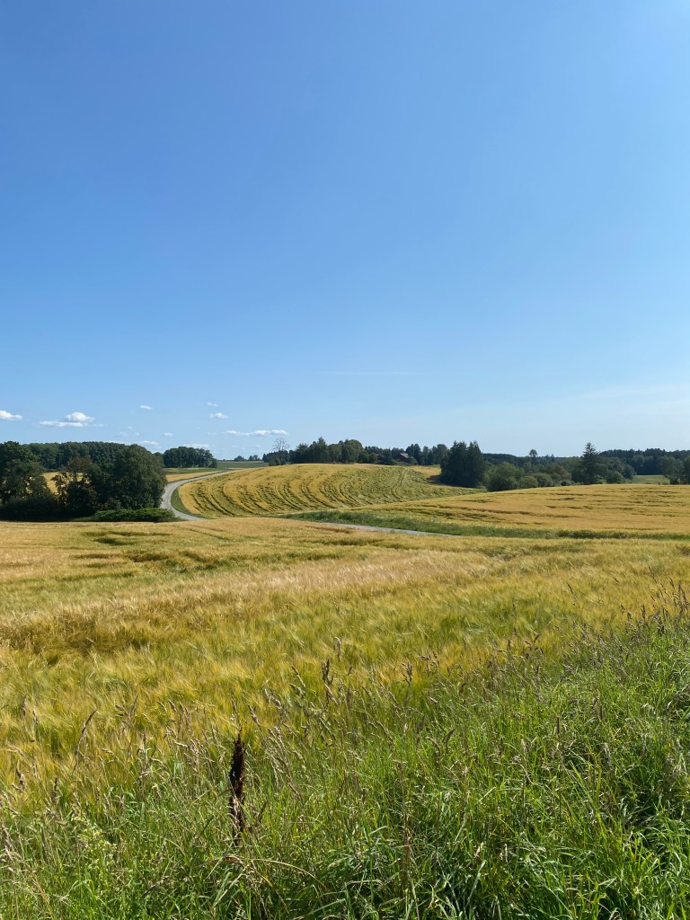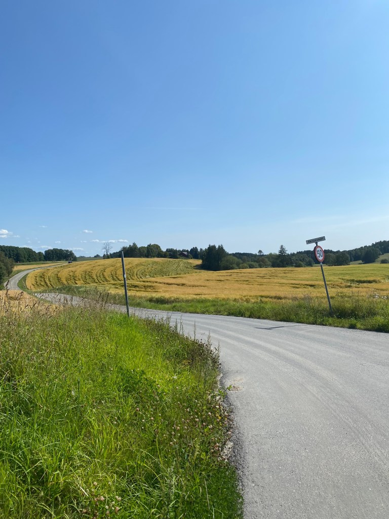 Turen er variert og fin. En sykler på fortau langs riksveier, på gårdsveier gjennom gårdstun og og åkrer, samt et lite stykke på grusvei (den gamle jernbanetraseen).