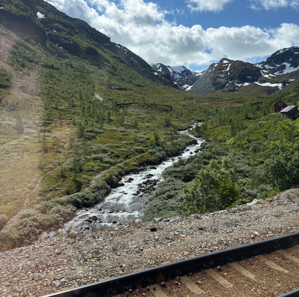 Vi gikk med godt mot inn til starten av Fåbergstølbreen, men på grunn av stor vannføring i elven kom vi ikke oss over og inn på breen. Vi snudde og gikk tilbake til bilen for å kjøre til Nigardsbreen. Der fikk vi en fin men kort tur.