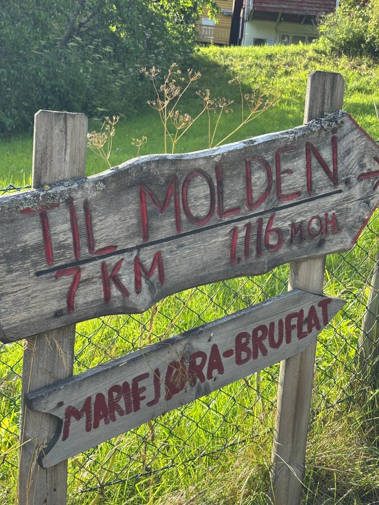 Jeg gikk fra Marifjøra til Molden. Du går fra sjøen og opp til 1116moh. Stort sett gjennom skog og lite utsikt før du nærmer deg toppen. På toppen (1100moh) så vi av alle dyr – et ekorn som også tydeligvis var på fjellltur. Vi gikk ned igjen på andre siden til Krossen. Nydelig utsikt hele veien nedover. På Krossen er det toalett og en koselig kiosk som blant annet selger vafler, is, kaffe og brus. Total lengde på turen var ca 11km. Dette var en gratis tur med to turledere.