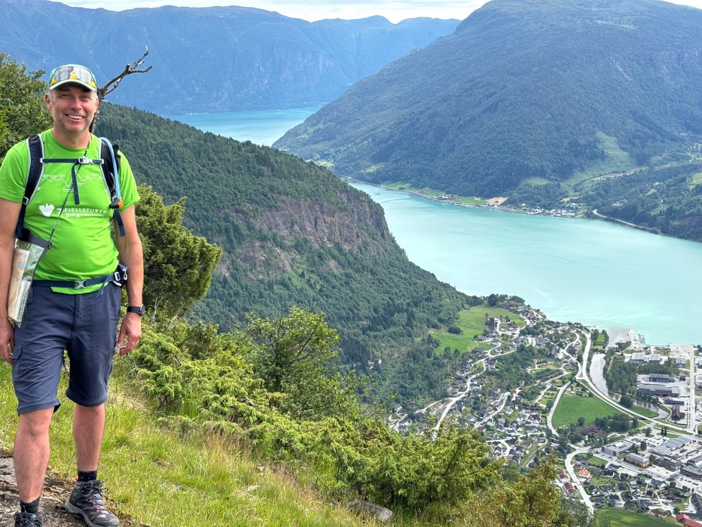 Selv om turen til Molden i går var en forholdsvis lett tur merket jeg at formen ikke var som den skulle. Jeg slet fortsatt med å være svak i venstre fot etter langvarig krykke gåing (tre benbrudd og beinmarsbetennelse). Vi bestemte oss derfor for å gå alene i mitt tempo på merket sti fra Gaupne sentrum og opp til Navarsetestølen. Turen er på 800 høydemeter og 15km og er en flott naturopplevelse.