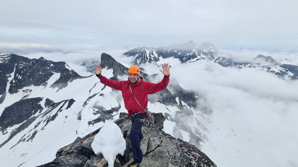 Mormor tok en hviledag og Erik fikk drømme turen til Store Austanbotntind 2201moh med spektakulær utsikt og klatring