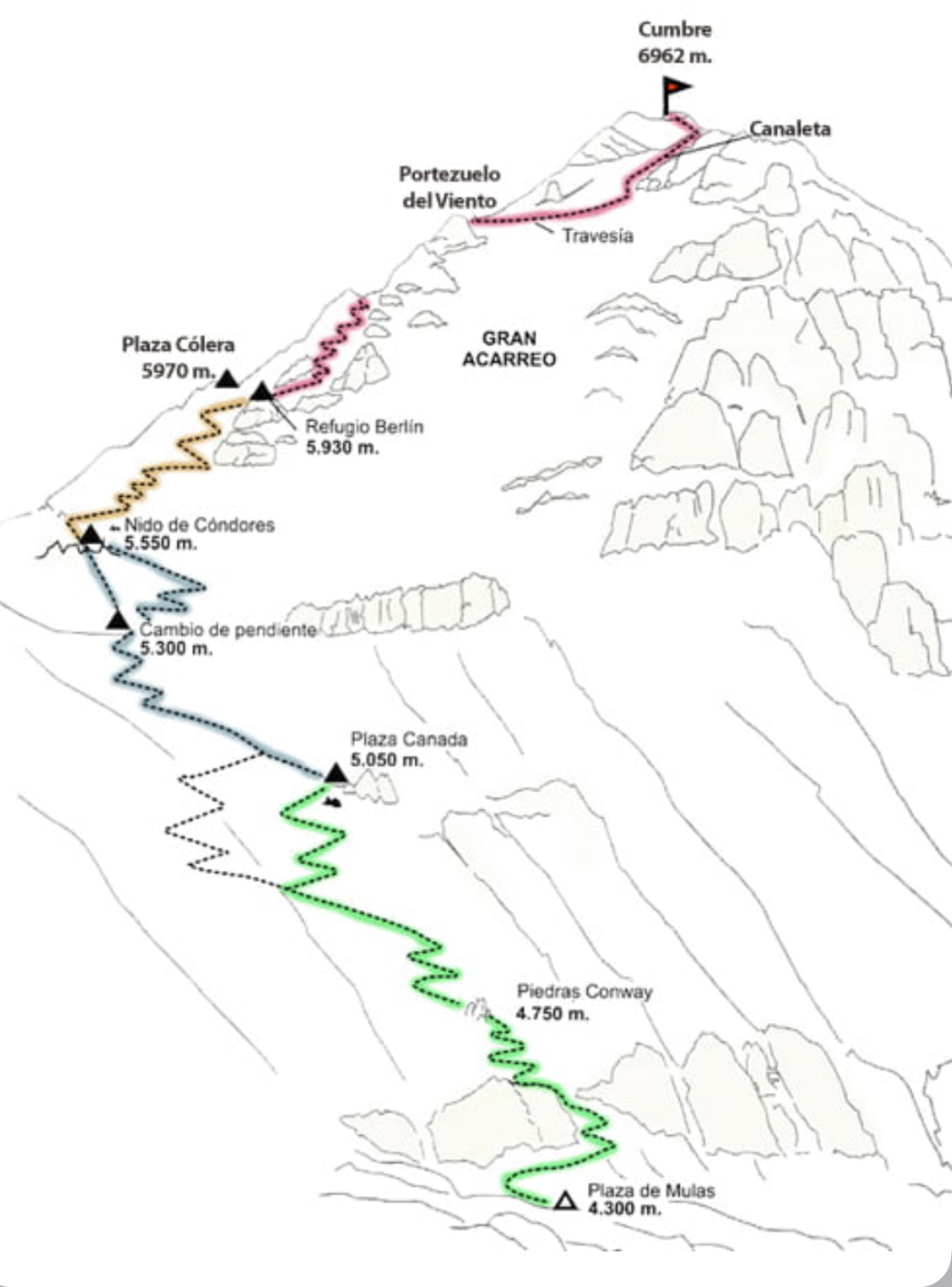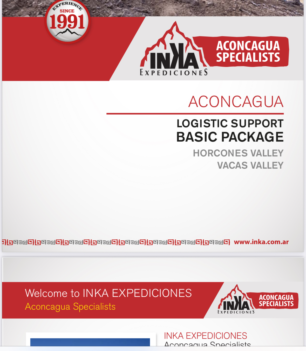 Foreløpig kommuniserer vi med Aconcagua Logistics og Inka Aconcagua specialist for å sjekke ut muligheten til å få en kontakt person i Mendoza som kan bistå med tillatelse til å bestige fjellet, få leiet ett eller to muldyr og eventuelt bistand til mat og vann frem til Plaza Cólera (5970 moh). Vi vil dele erfaringene vedrørende kontaktpersoner og logistikk fortløpende.